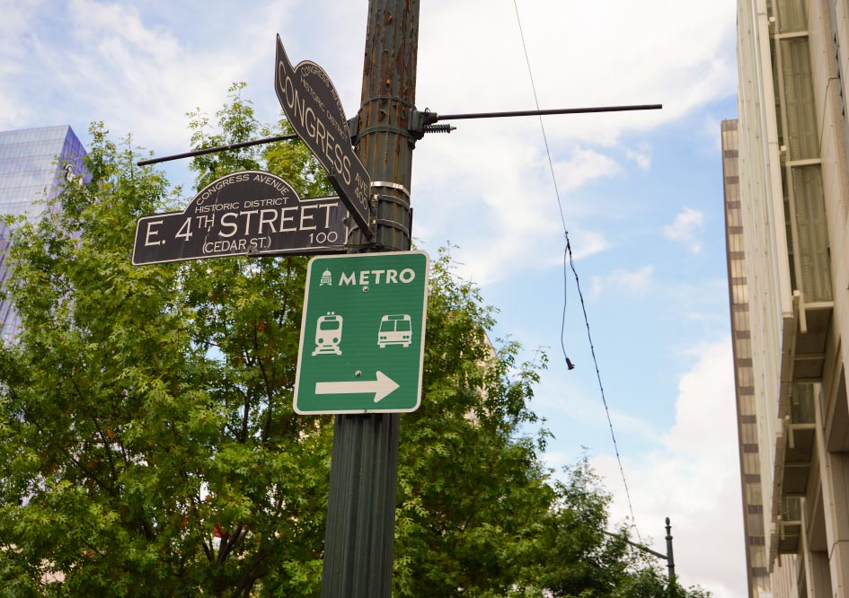 CapMetro MetroBus: There are several MetroBus stops downtown. Most routes run from 5am until midnight but there are some Night Owl buses available every day except for Sunday until 3am. Plan your trip at CapMetro: capmetro.org/plan