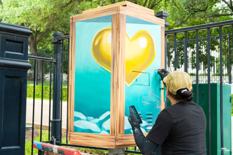 Want to visit and see this ARTBOX for yourself? Check out our getting around page to plan your trip. This ARTBOX is located right off of 11th street on your way to the Texas Governor’s Mansion. This ARTBOX was curated by the Downtown Austin Alliance Foundation.