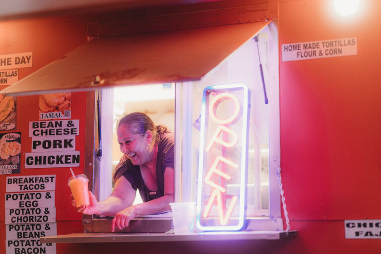 The Old Bakery & Artisan Emporium at 10th Street and Congress Avenue is undergoing an exciting transformation. It now features a new mural by Ruben Esquivel, commissioned through the Downtown Austin Alliance Foundation’s Writing on the Walls program. The Downtown Austin Alliance Foundation is managing the outdoor concession area at Old Bakery Park, and we will provide programming for the plaza.